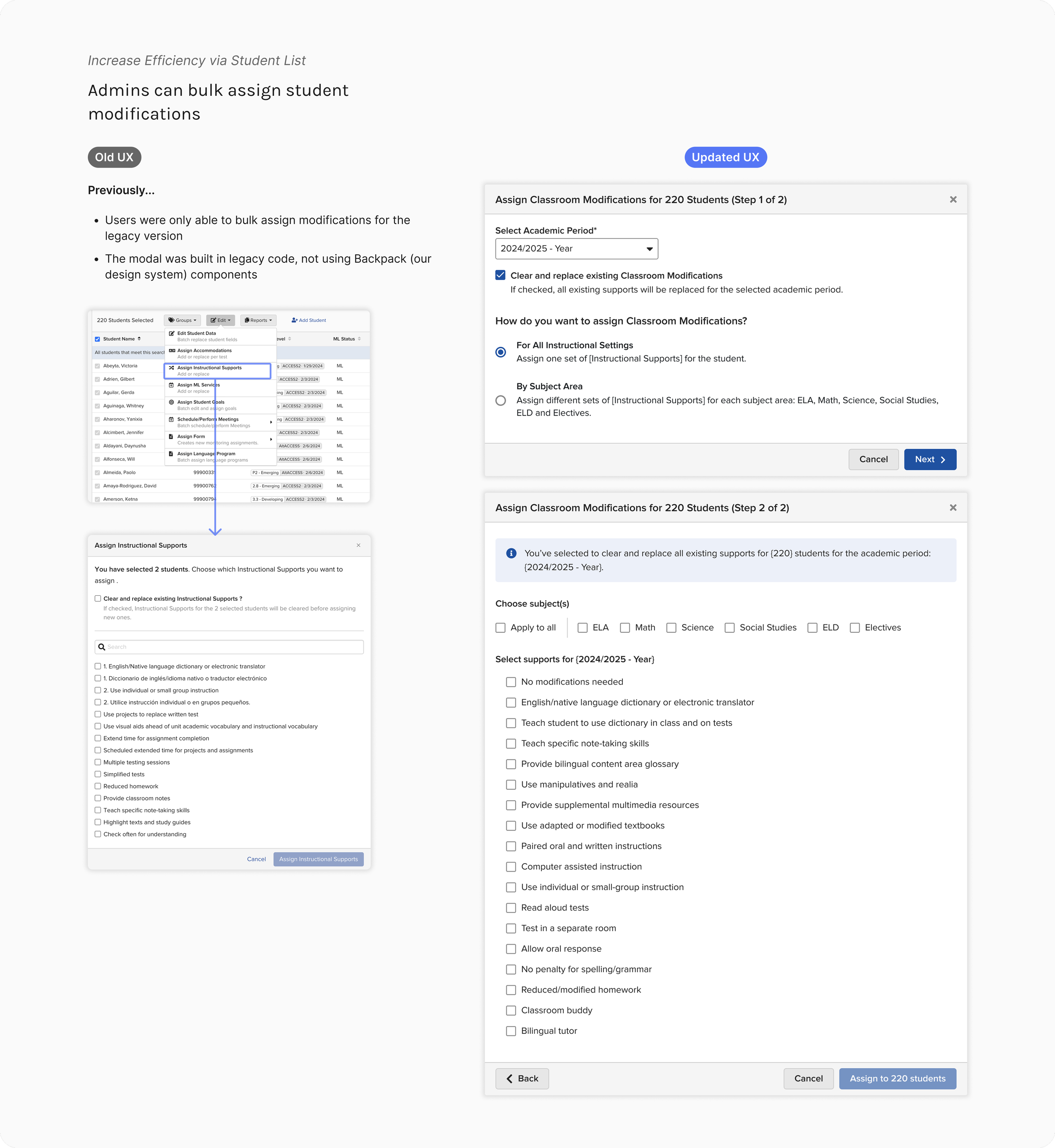 Bulk assignment and the ability to edit existing modifications directly in Forms gave admins and educators faster, more flexible ways to manage supports—saving significant time especially during back-to-school setup.